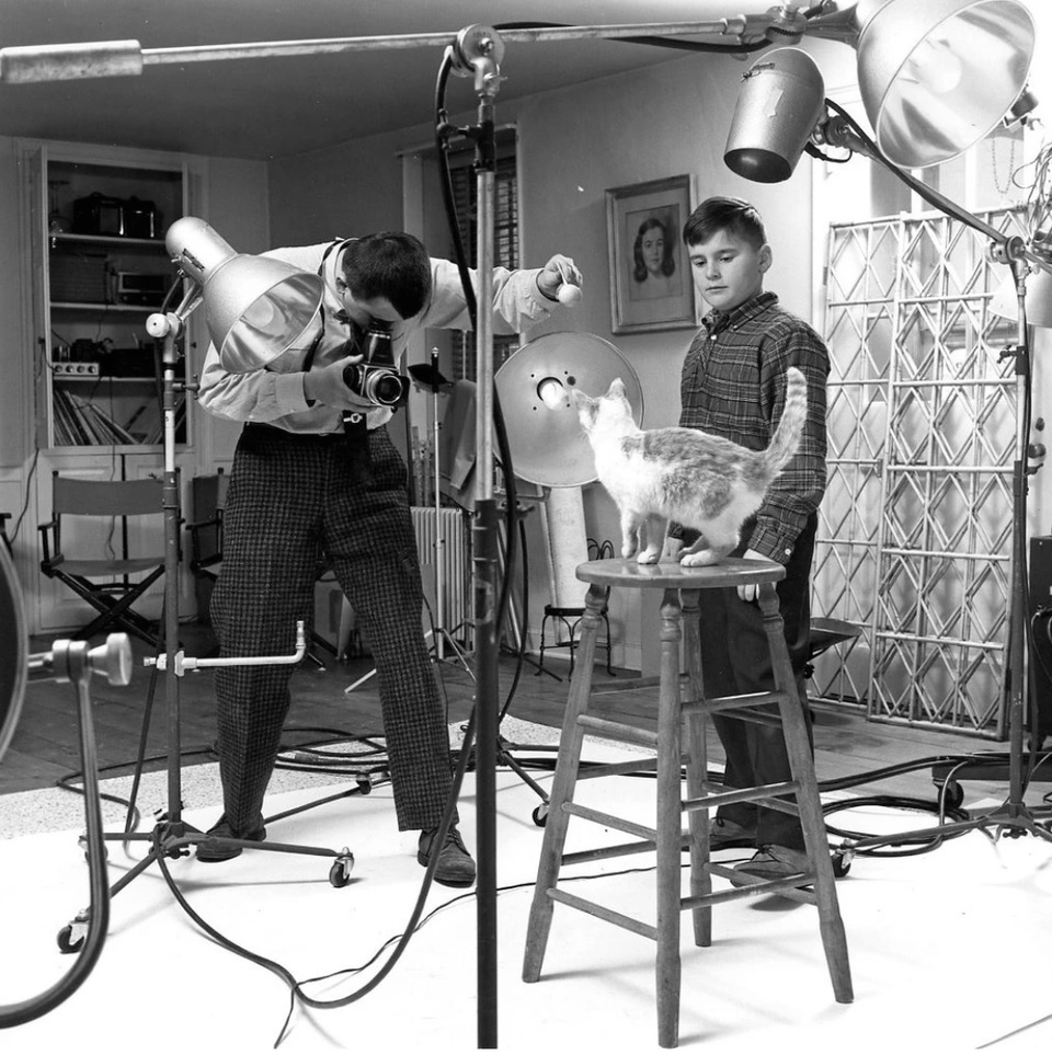 Previous Image Walter Chandoha Walter Chandoha, who was known for his playful photos of felines, uses a ball to distract a cat while snapping shots.
