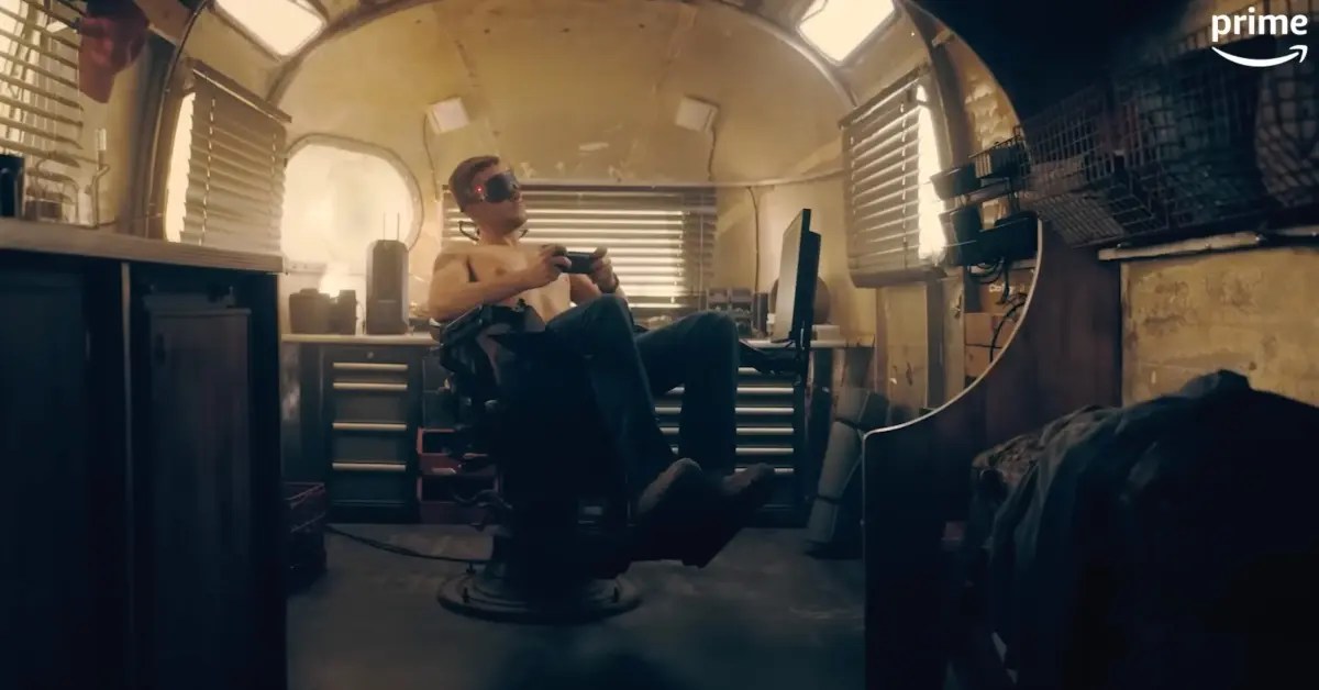 Reynor’s Burton connects to a VR world from his Airstream camper in The Peripheral, which is set primarily in North Carolina’s Blue Ridge Mountains and London, UK.