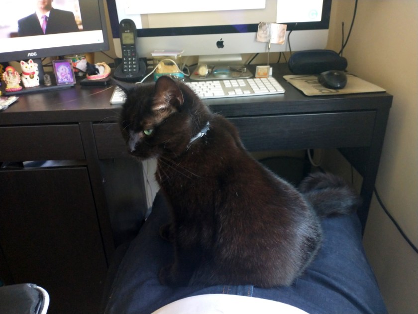 Previous Image Next Image Bella and John Bella deciding she needs to be a lap cat for a little while in order to supervise John’s work. Credit: John Graham