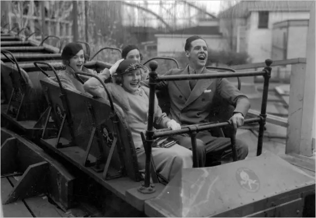 Previous Image Next Image Playland during the Depression Riders on the Dragon Coaster during the Great Depression. Credit: Rye Historical Society
