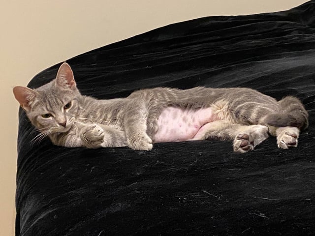 A cat shaved during spay/neuter surgery. Credit: jp_the_man/reddit
