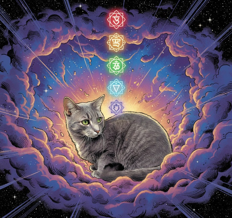 “I almost forgot,” he says, raising his meows so all can hear him. “Please prepare my post-nap feast, for the quantum processes of my restorative beauty sleep make me famished. Serving me delicious food is most pleasing to the cosmic pantheon. I shall now spirit-walk the galactic plane and commune with the ancient alchemists of Epsilon Eridani to probe the mysteries of dark matter and KFC Extra Crispy. Can someone bring me a quantum pillow?”