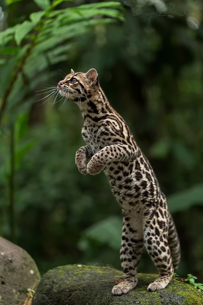 Margays are outstanding jumpers in addition to their unrivaled climbing ability, able to leap six to eight times their own height. It’s easy to see how these diminutive cats can intercept birds and monkeys far above the jungle floor in addition to hunting terrestrial mammals.