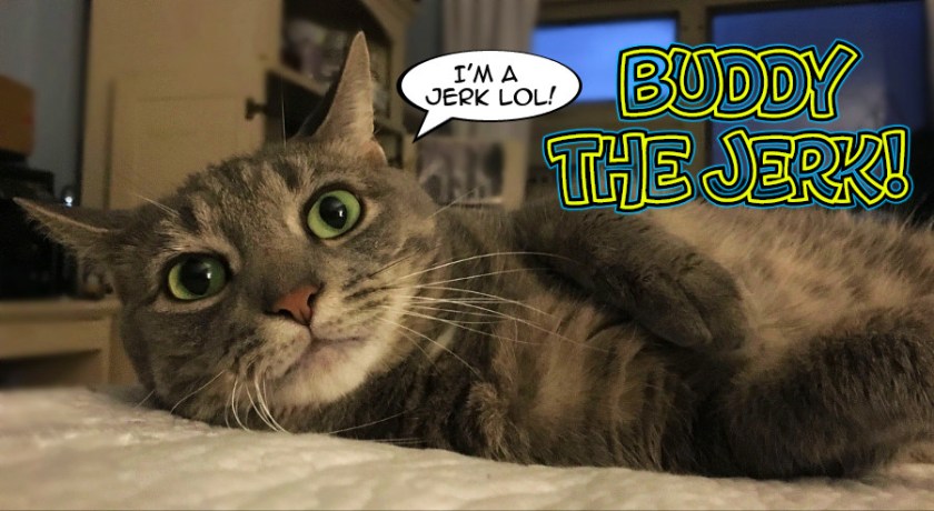 Still, I look at the bright side. Twix has shown the girls that cats can be cuddly and sweet and loving. They’ve got their Twix, and I’ve got my imperious, scheming, turkey-obsessed Buddy.