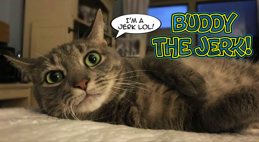 Yes, my cat is a jerk. Yes, I still love him. In fact, I’m glad he’s my Buddy and he didn’t end up with people who think cats do things out of spite, or would physically punish him for acting like a cat. A jerk of a cat, but a cat all the same.