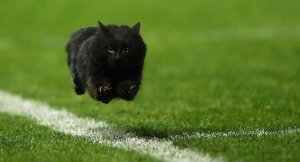 Last night’s game was not the first time a cat has taken the field at a major US sporting event. On Nov. 4, 2019, a black cat scurried out while the New York Giants were hosting the Dallas Cowboys. Superstitious fans blamed the cat for the Giants’ subsequent losing streak, but the truth is the team was just terrible and kitty was simply reminding everyone of that fact.
