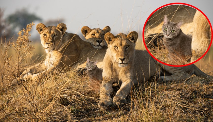 TANZANIA – A domestic house cat has been spotted living among lions in Tanzania’s Lake Manyara National Park, according to wildlife rangers and locals who have spotted the tiny feline sidling up to its larger brethren.